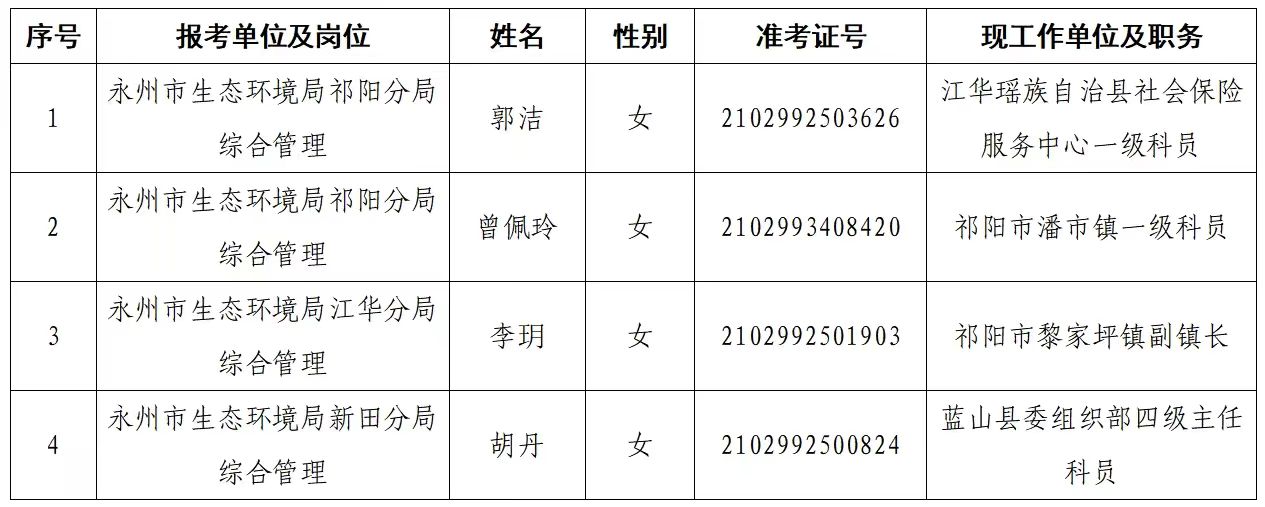 永州市生態(tài)環(huán)境局2025年度公開遴選公務(wù)員擬遴選人員公示