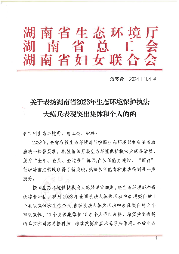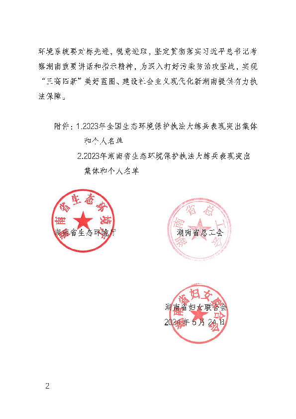 名稱: 湖南省2023年生態環境保護執法大練兵表現突出集體和個人
