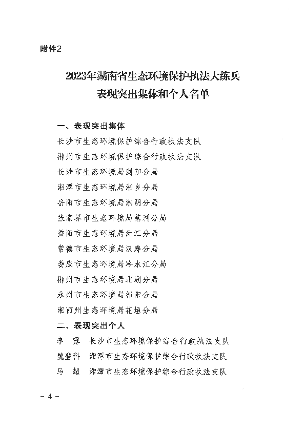 湖南省2023年生態環境保護執法大練兵表現突出集體和個人